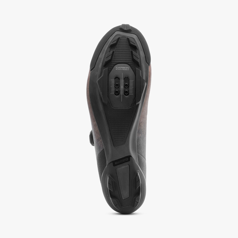 Super stiff and lightweight carbon composite sole for high-speed gravel racing.