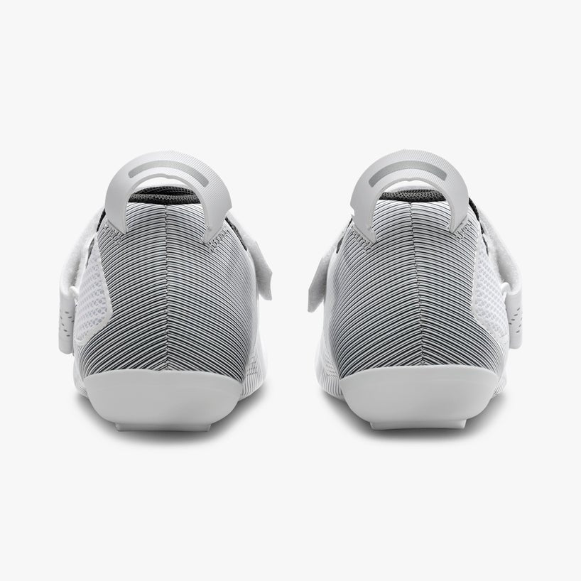 Quickly secure shoe during transitions with easy to grab asymmetrical heel loop
