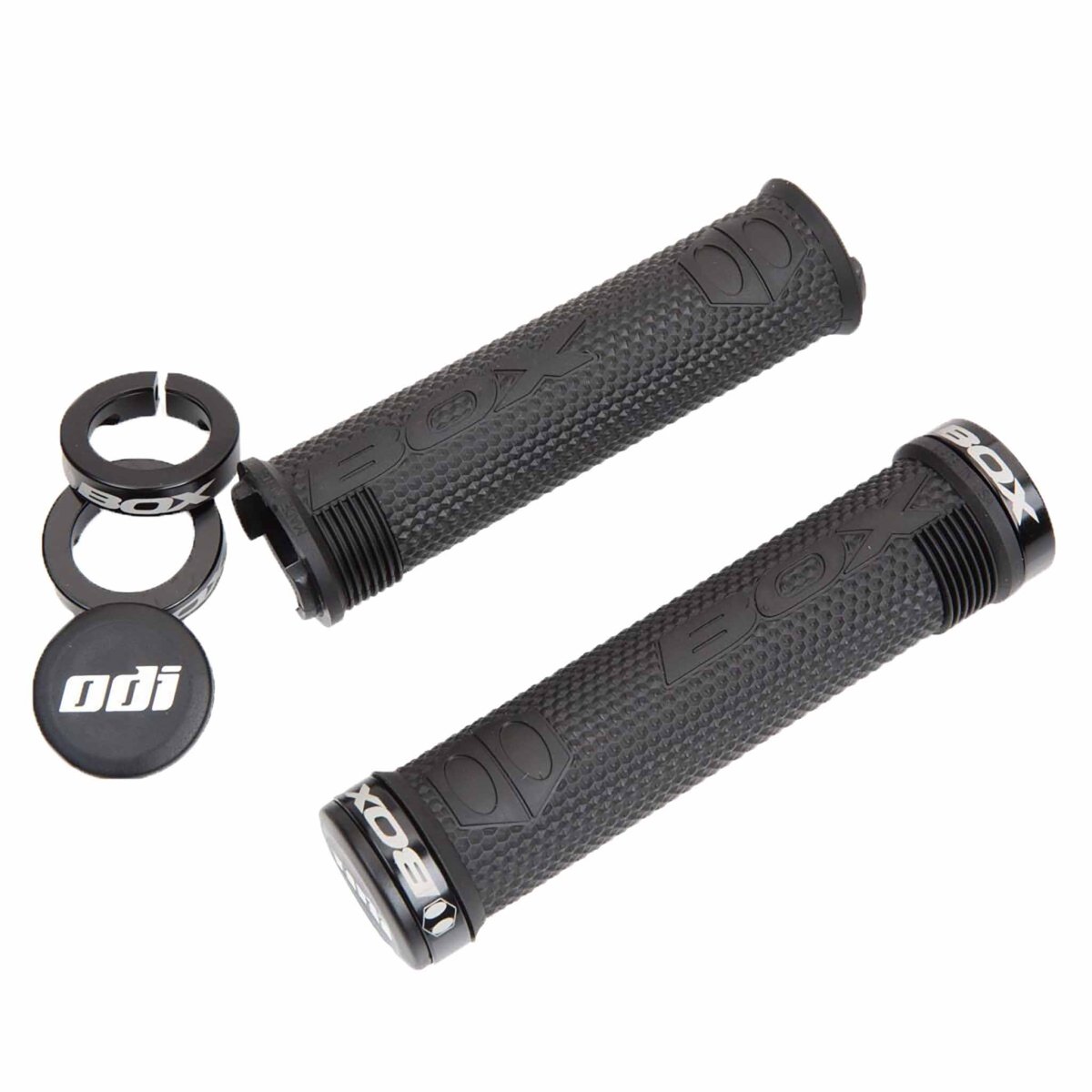 - Includes four standard, ODI LockOn grip clamps with laser-etched Box logos and two Snap Cap end plugs