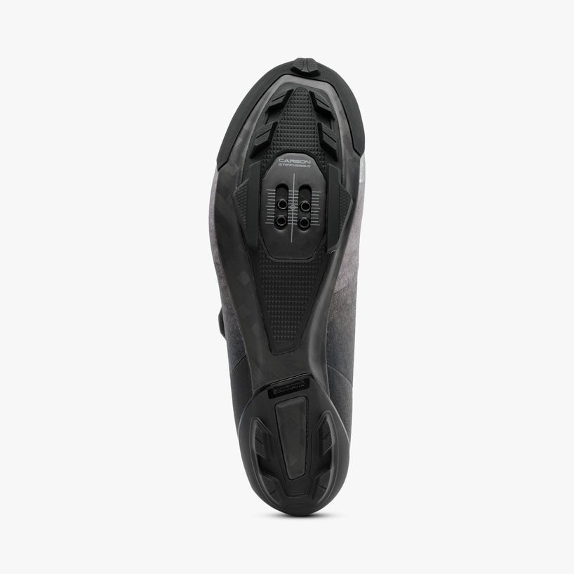 Super stiff and lightweight carbon composite sole for high-speed gravel racing.